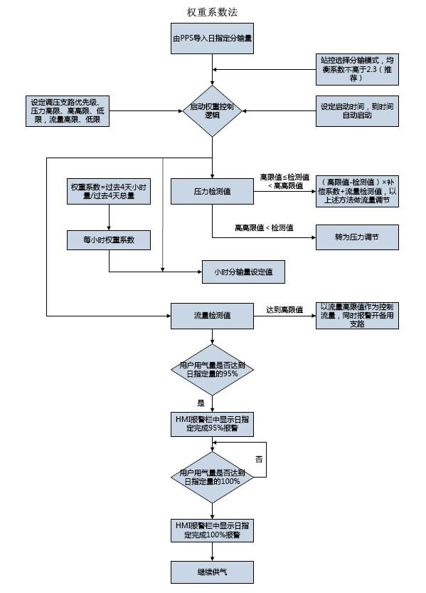 權重系數=2小時用氣量/24小時累計用氣量,權重系數由站控PLC或中控SCADA系統完成計算。2小時用氣量為過去7天同一時間段2小時用氣量的合計值;24小時累計用氣量為過去7天24小時累計用氣量的合計值。
