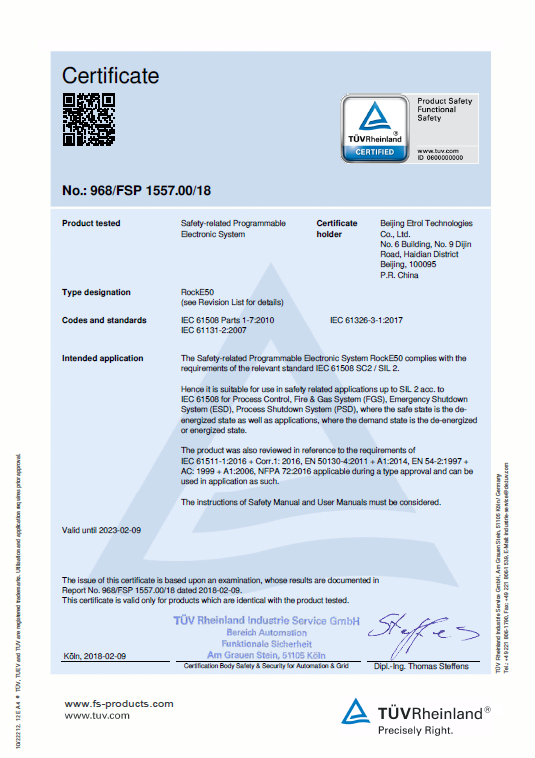 本公司還為本項目的FGS火氣系統配置了RockE50 安全儀表系統, 實時監控所有火焰探頭、硫化氫探頭,可燃氣探頭、煙探頭、熱探頭、手動報警站等輸入信號,并做出邏輯判斷,啟動相應的報警燈鈴以及必要的關斷和消防設施,同時把系統內火氣設備狀態信號通過冗余的通訊方式傳送到平臺中控室。